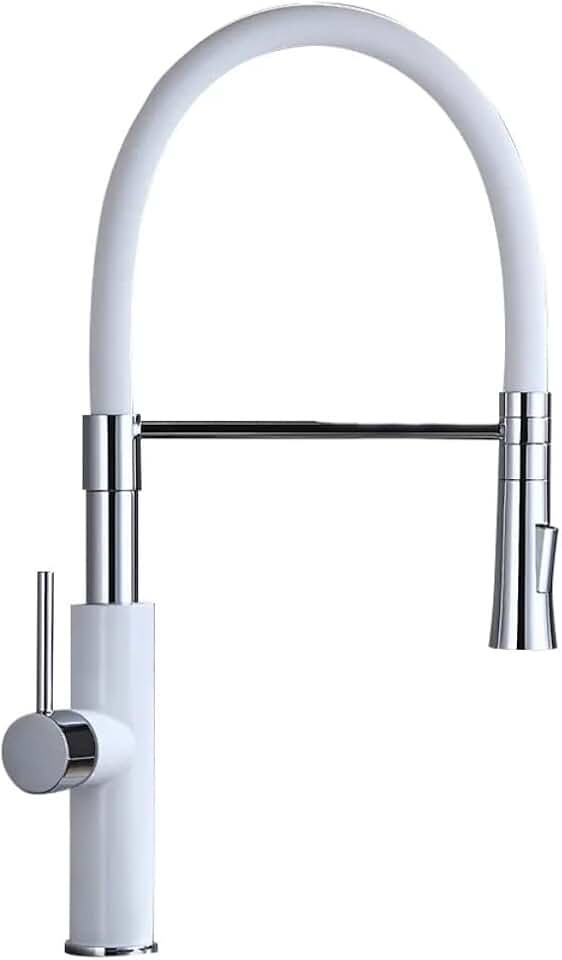 High-Arc Kitchen Sink Faucet Pot Filler 360 Degree Dual Function Single Handle Sleek Pull-Down Kitchen Faucet, White Chrome Finish