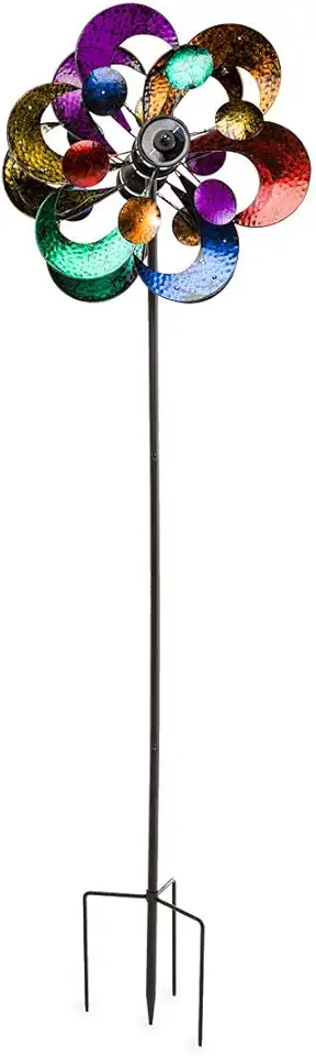 Plow & Hearth 54345 Gala 4 Blade Solar Wind Spinner, 24" x 20.75" x 84", Multicolor