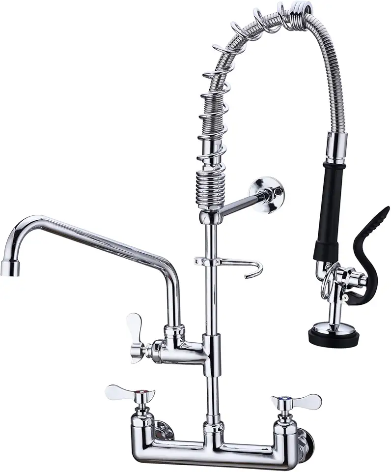 TRUSTMI Commercial Kitchen Faucet with Pull Down Pre-Rinse Sprayer 25" Height Brass Kitchen Sink Faucet, 8 Inch Center Wall Mount, Polished Chrome