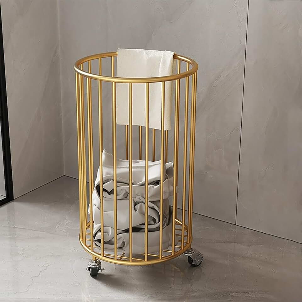 Metal Rolling Laundry Basket Trolley - Rolling Laundry Basket with Wheels, Yoga Mat Storage Box - Ideal for Bedroom, Bathroom, Laundry Room, Gym, Toy Room, Yoga Room Storage