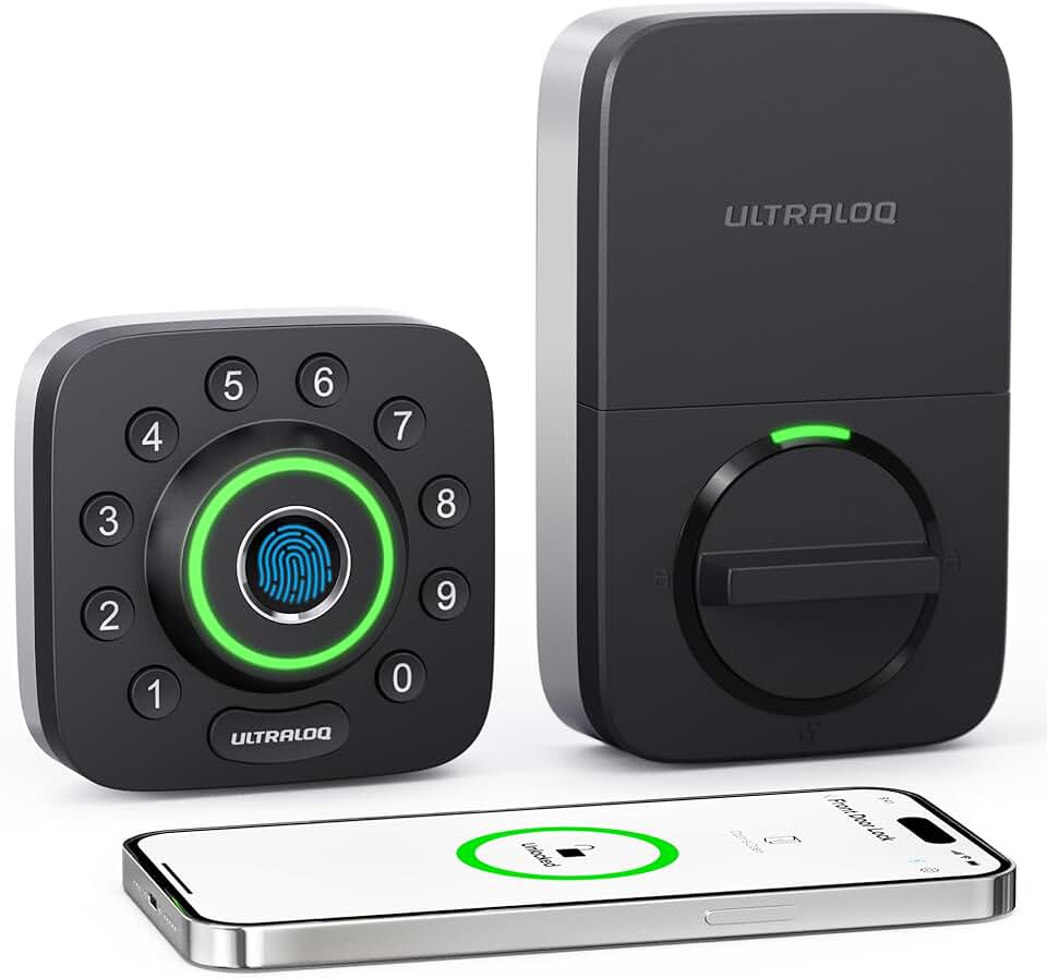ULTRALOQ U-Bolt Pro Smart Lock, Keyless Entry Door Lock via Bluetooth, Smartphone, Fingerprint ID, Anti-peep Keypad, Auto Unlock, Smart Lock for Front Door, Smart Deadbolt Lock, IP65 Waterproof