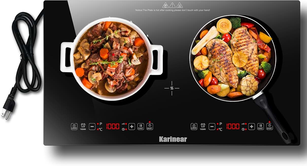 Karinear 2 Burners Electric Cooktop 110v, Portable Electric Stove top 24 Inch Electric Countertop Burner, Electric Radiant Ceramic Cooktop, Sensor Touch, Timer, Safety Lock