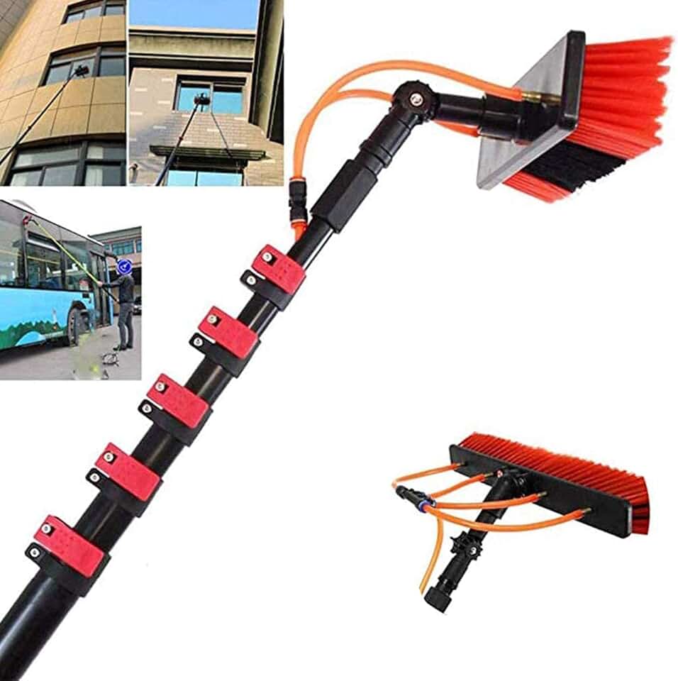 Window Cleaning Brush Equipment 3.6-11M Window Cleaner Kit Water/Hose Fed Pole Professional Window Squeegee Cleaner Shower Squeegee with Extension Pole Telescopic Window Washing