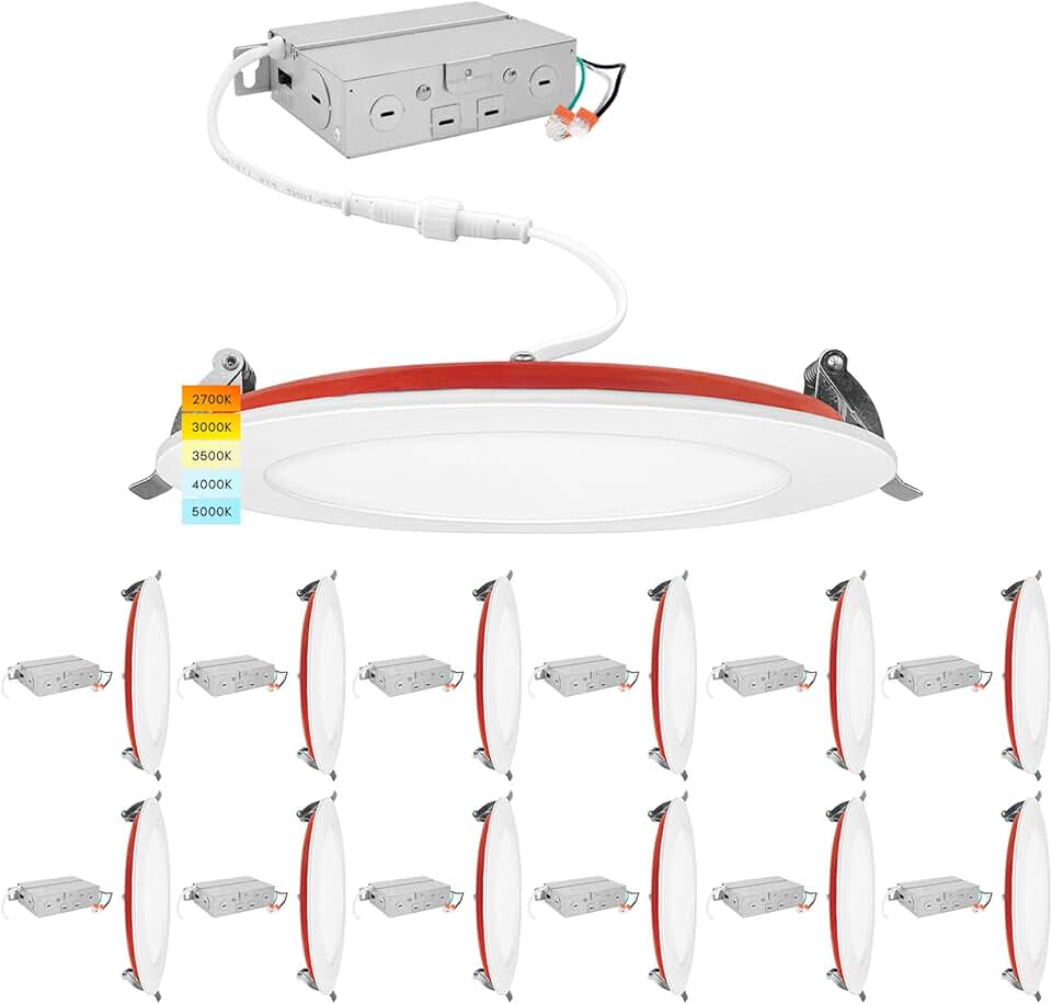 Luxrite 12-Pack 6 Inch Ultra Thin LED Fire Rated Recessed Lights, 5CCT 2700K/3000K/3500K/4000K/5000K, 2 Hour Fire Rating, 1100 Lumens, Dimmable Wafer Lights, IC Rated, Wet Rated, ETL, No Tenmat Needed