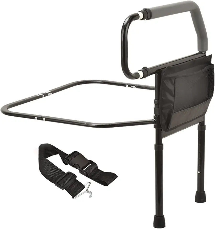 Metal Safety Assist Bed Rail with Wide Handle & Adjustable Support Legs, Portable Bedside Grab Bar for Elderly, Easy to Assemble