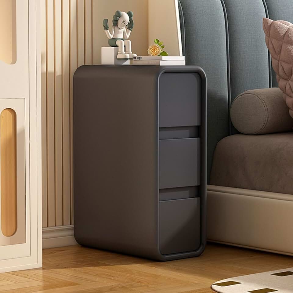 White nightstand set of 2 3 feet tall ,white nightstand with 3 drawer ,wood bedside cupboard accent table with storage space ,3 drawer nightstand ,Suitable for living room, bedroom ( Color : Dark grey
