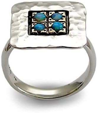 Mixed metals Square ring with four Opals