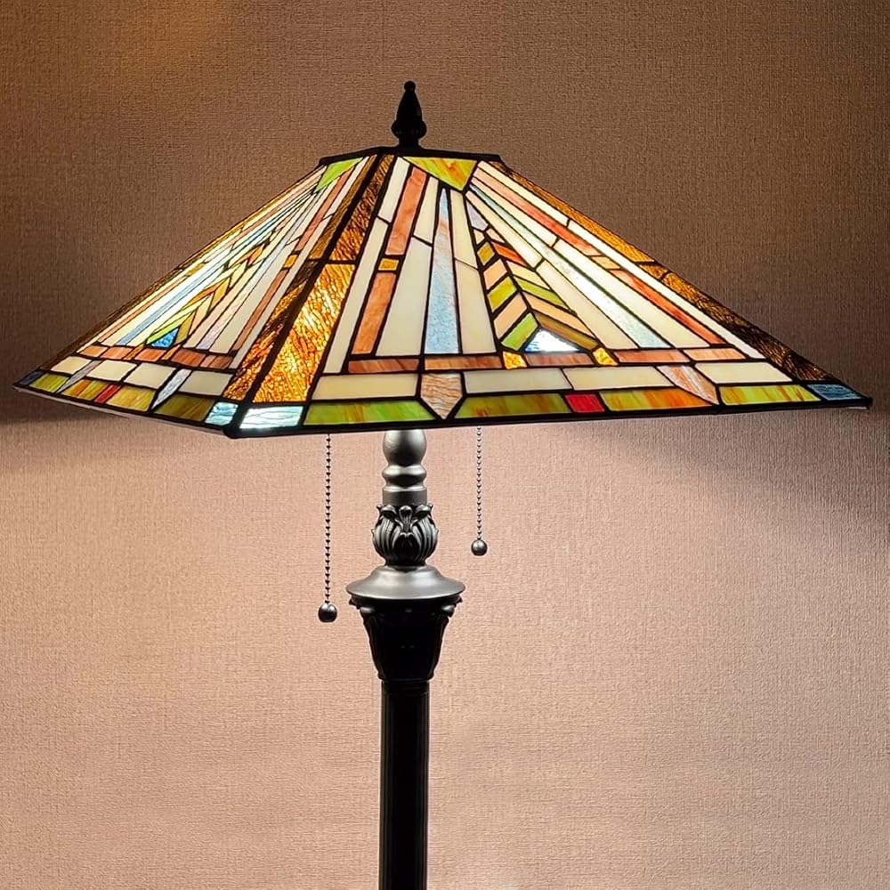 Tiffany Floor Lamp for Living Room 2 Lights Mission Style Stained Glass Reading Floor Light Antique Standing Tall Lamp for Bedroom Office