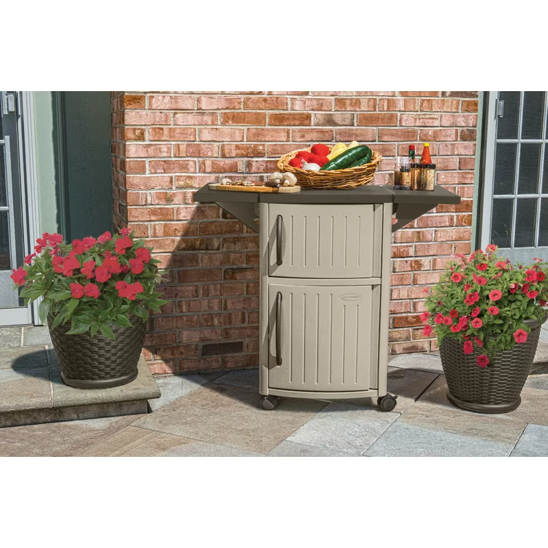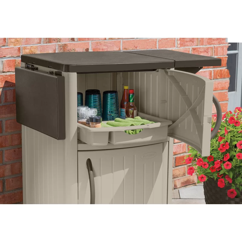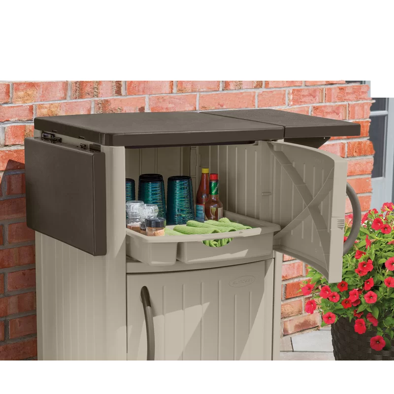 Suncast DCP2000 Outdoor Grilling Prep Station Table with Storage, Taupe/Brown