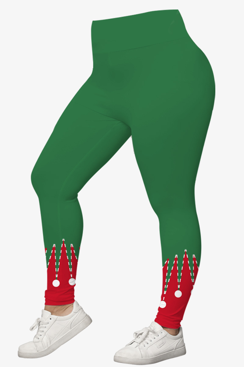 Flycurvy Plus Size Christmas Green Clown Sash Belt Striped Print Legging