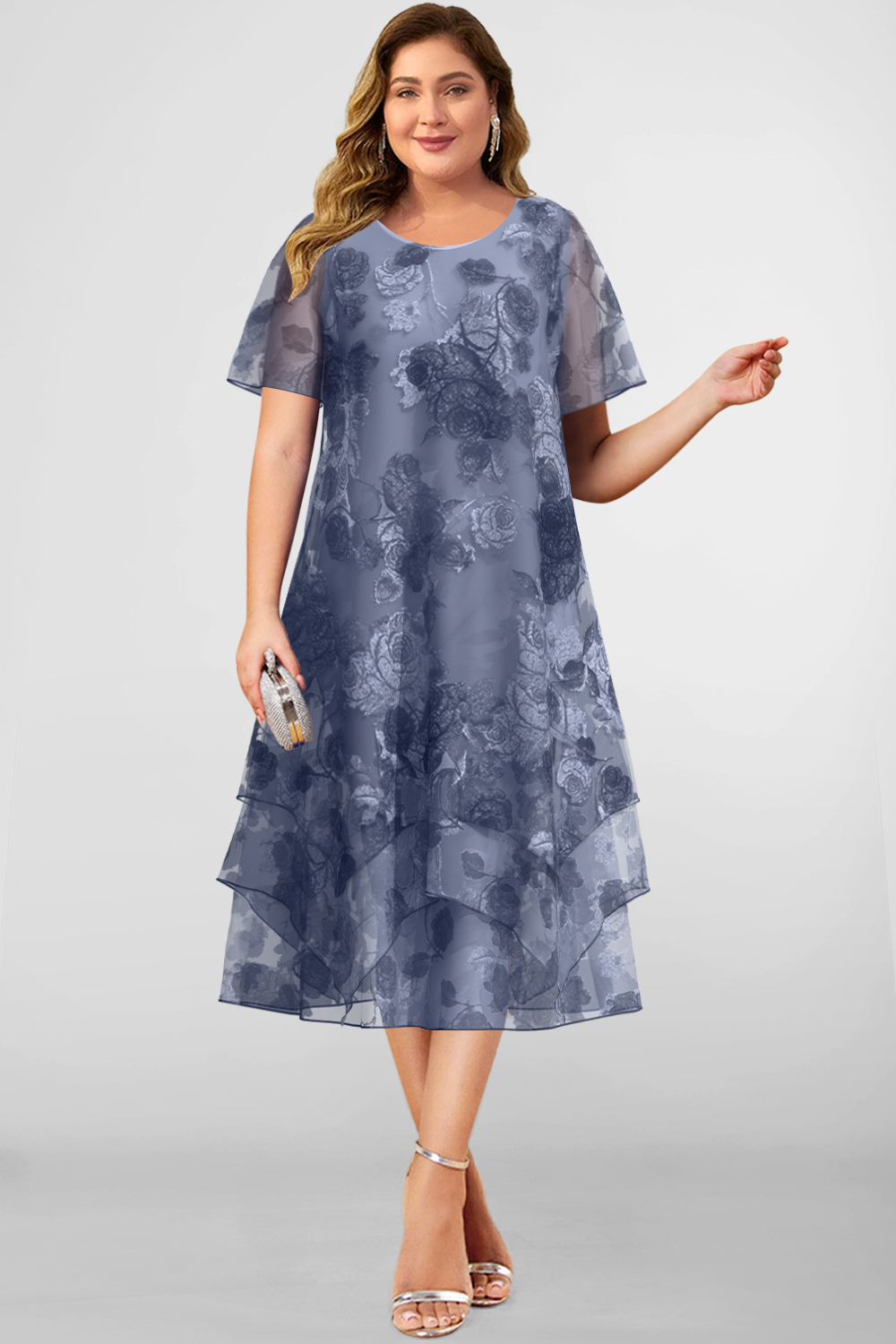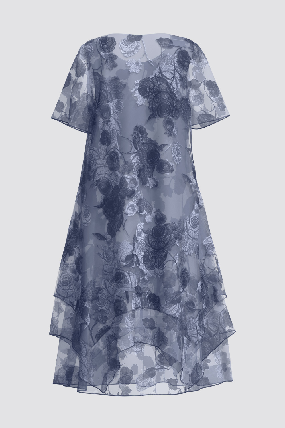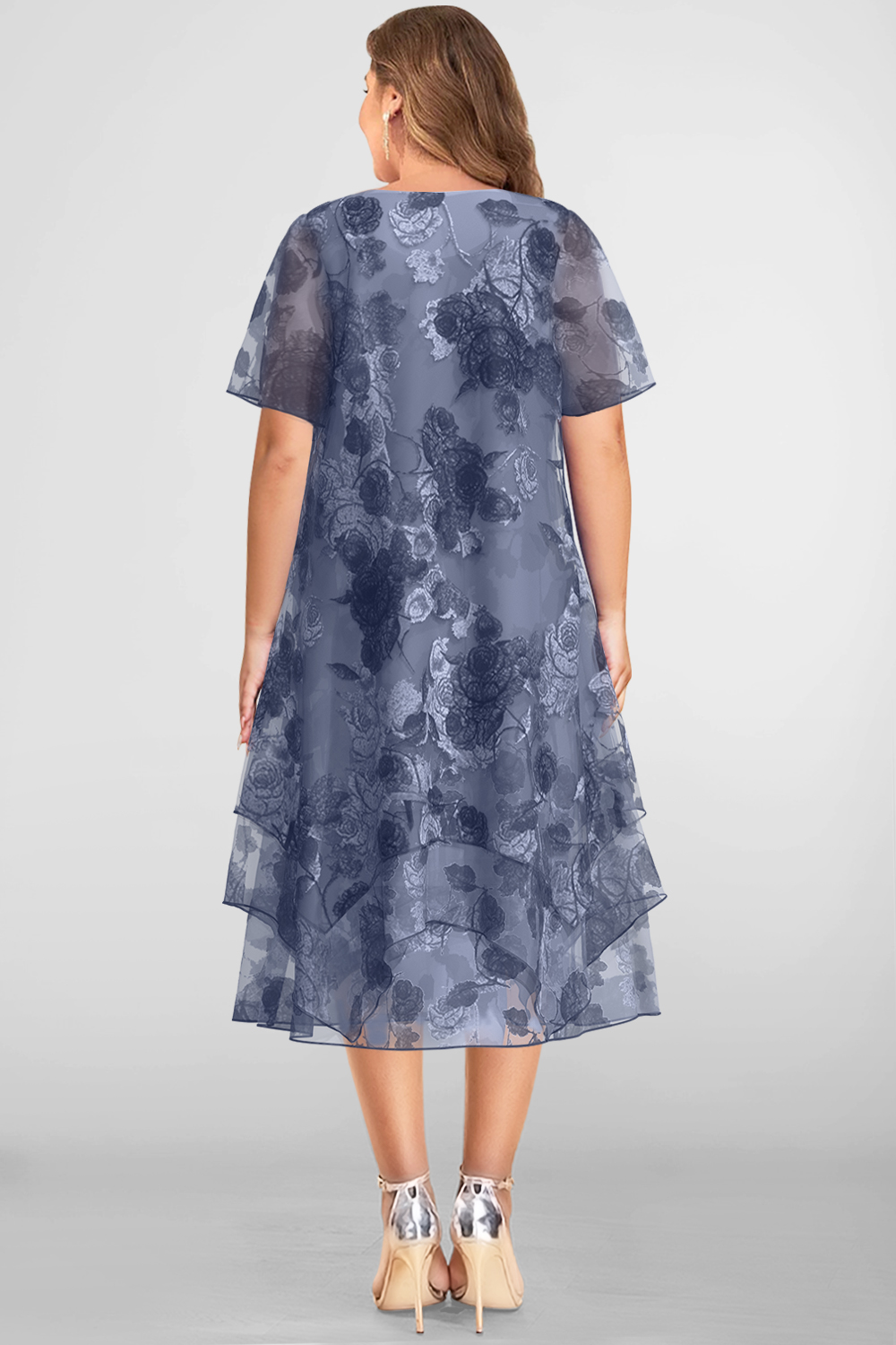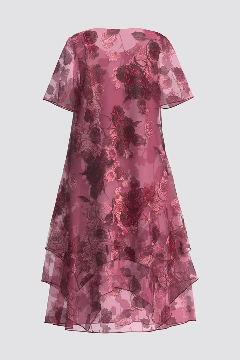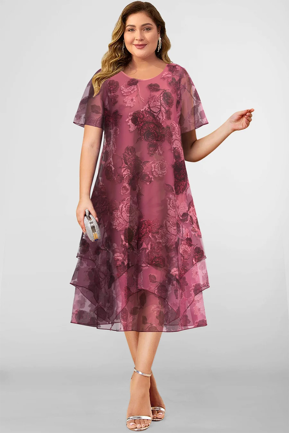 Plus Size Mother Of The Bride Mauve Chiffon Floral Print Asymmetrical Hem Midi Dress