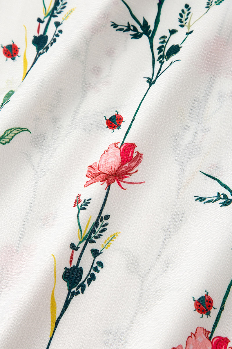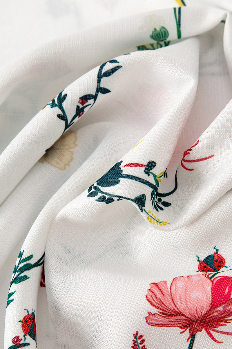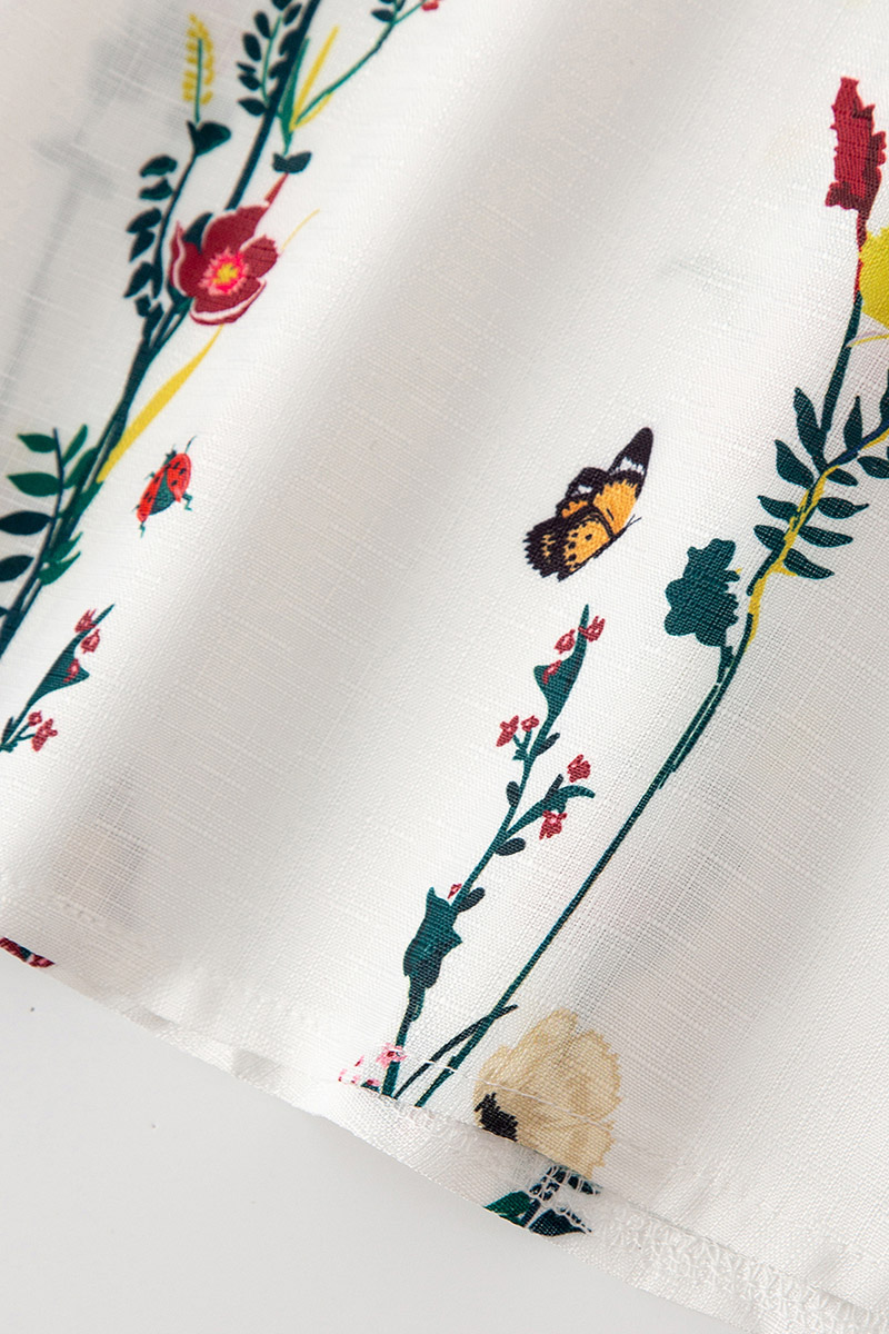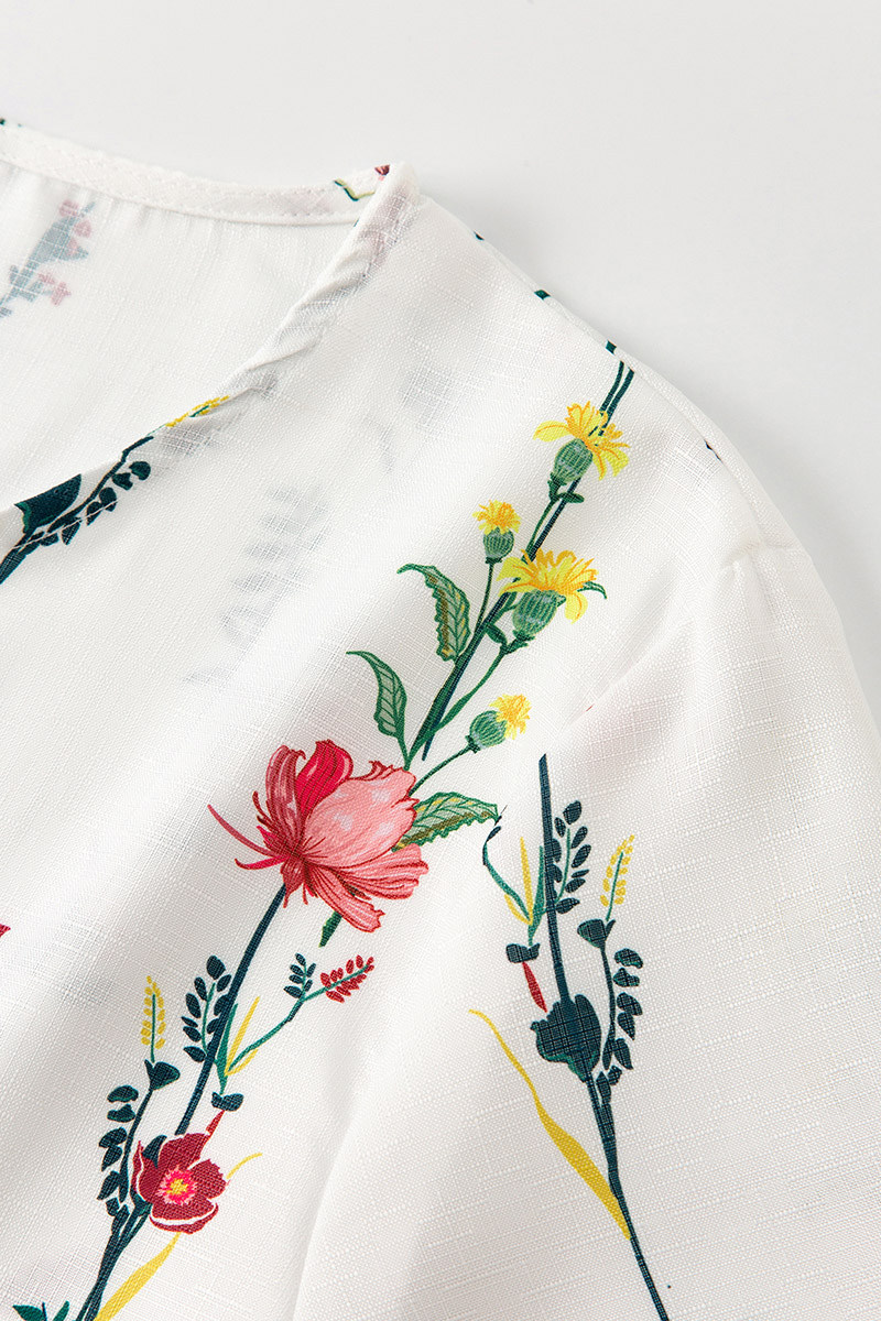 Flycurvy Plus Size Casual White Linen Round Neck Floral Print Half Sleeve Loose Blouse